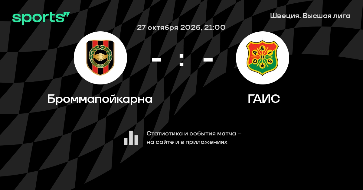Результат прошлой игры в турнире «Аллсвенскан»: Вернаму – Броммапойкарна 1:1. После 27 туров Броммапойкарна набирает 30 очков и занимает 11 место в турнире. Лучший бомбардир команды – Виктор Станге: он забил 10 в 24 матчах. Броммапойкарна не может выиграть в 3 последних матчах в рамках турнира «Аллсвенскан». Броммапойкарна пропускает в 3 последних матчах в турнире «Аллсвенскан». В последних 5 играх Броммапойкарна забивает 4 голов. В последних 5 играх Броммапойкарна пропускает 9 голов.