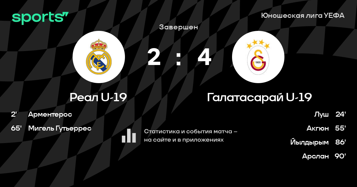 Реал U-19 - Галатасарай U-19: положение в турнире