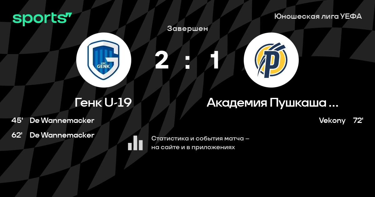 Трансляция Генк U-19 - Академия Пушкаша U-19