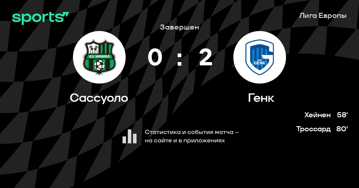 Лига Европы. «Сассуоло» проиграл «Генку» и другие результаты