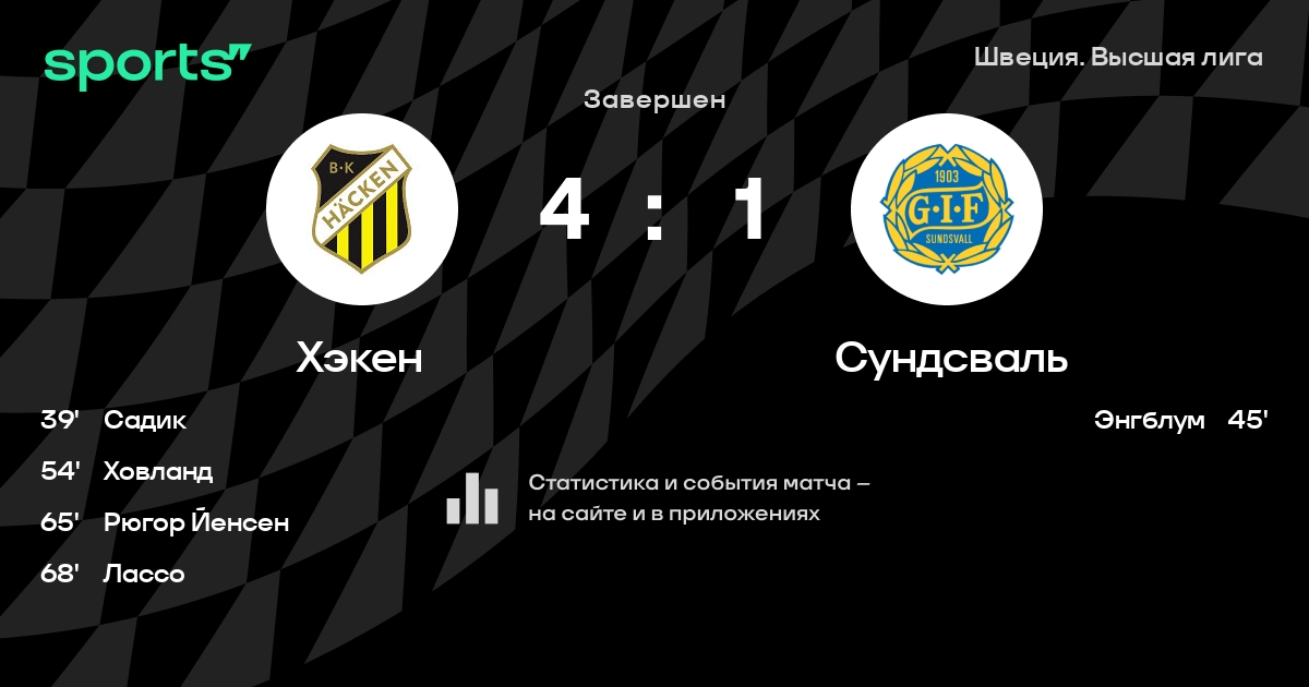 Хэкен – Сундсваль: Хэкен побеждает в 5 последних очных матчах