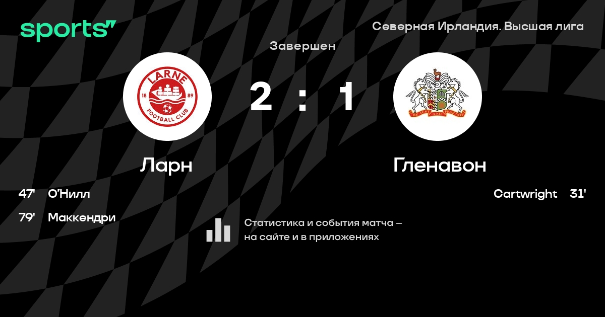 Результат прошлой игры в турнире «Премьер-лига»: Ларн – Портадаун 3:0. После 13 туров Ларн набирает 29 очков и занимает 2 место в турнире. Лучший бомбардир команды – T. O'Connor: он забил 7 в 19 матчах. Ларн не проигрывает в 4 последних матчах в рамках турнира «Премьер-лига». В 4 последних матчах в турнире «Премьер-лига» Ларн обязательно забивает. В последних 5 играх Ларн забивает 10 голов. В последних 5 играх Ларн пропускает 2 голов.