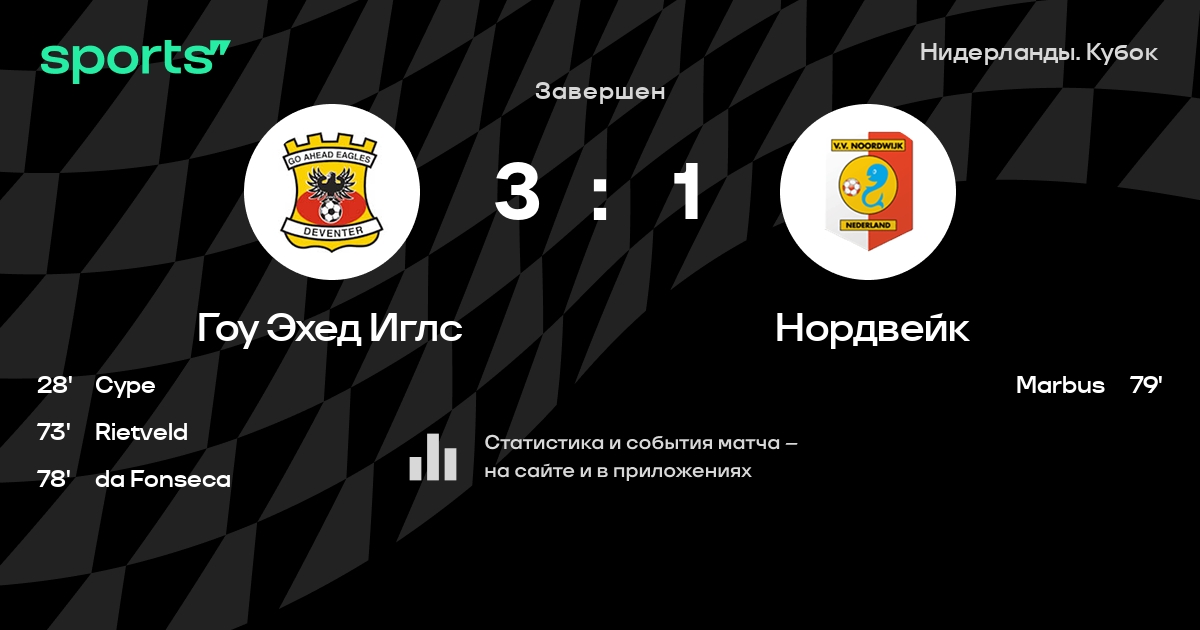 Результат прошлой игры в турнире «Кубок»: Гоу Эхед Иглс – Твенте 3:1. В последних 5 играх Гоу Эхед Иглс забивает 11 голов. В последних 5 играх Гоу Эхед Иглс пропускает 5 голов.