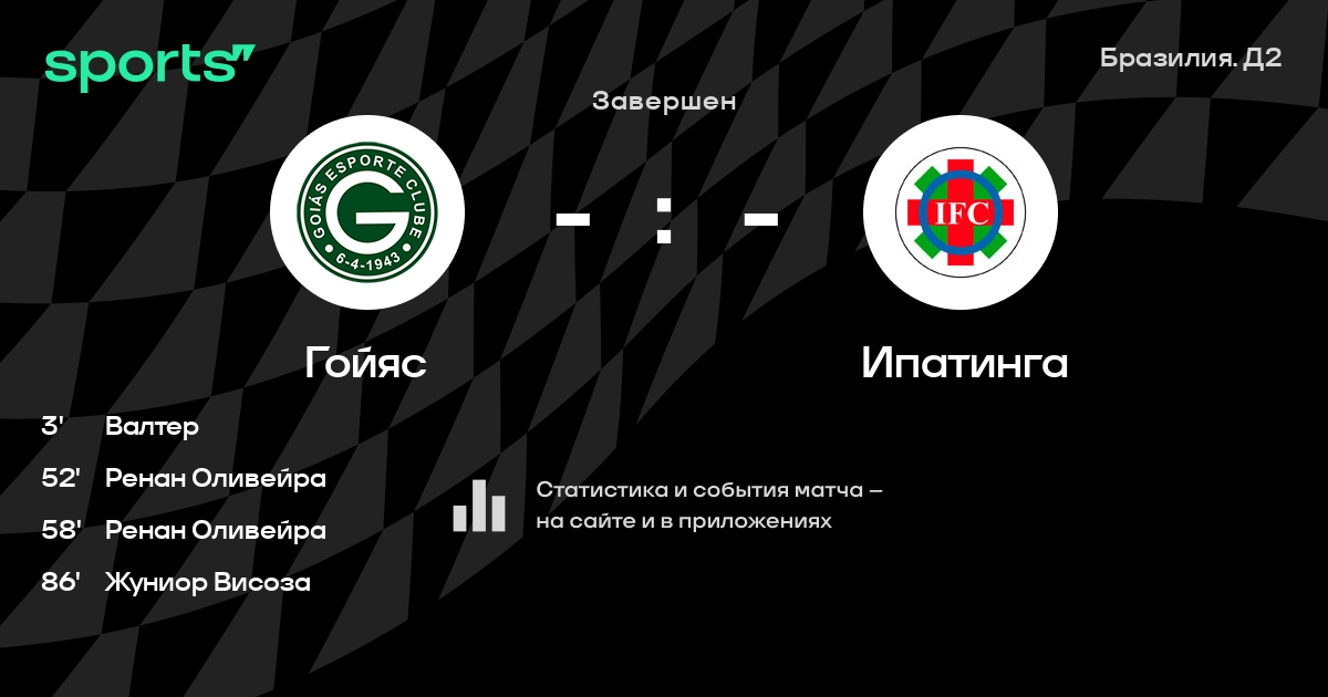 Арлей - Эжидио, Эрнандо, dos Santos Barbosa Junior, Валмир Лукас - Ренан Оливейра, Рамон, Тиаго Мендес, Амарал - Валтер, Рикардо ГолартЗапасные: Carvalho Farias, Валлинсон, Маркос Пауло, Давид, Кайо, Жуниор Висоза