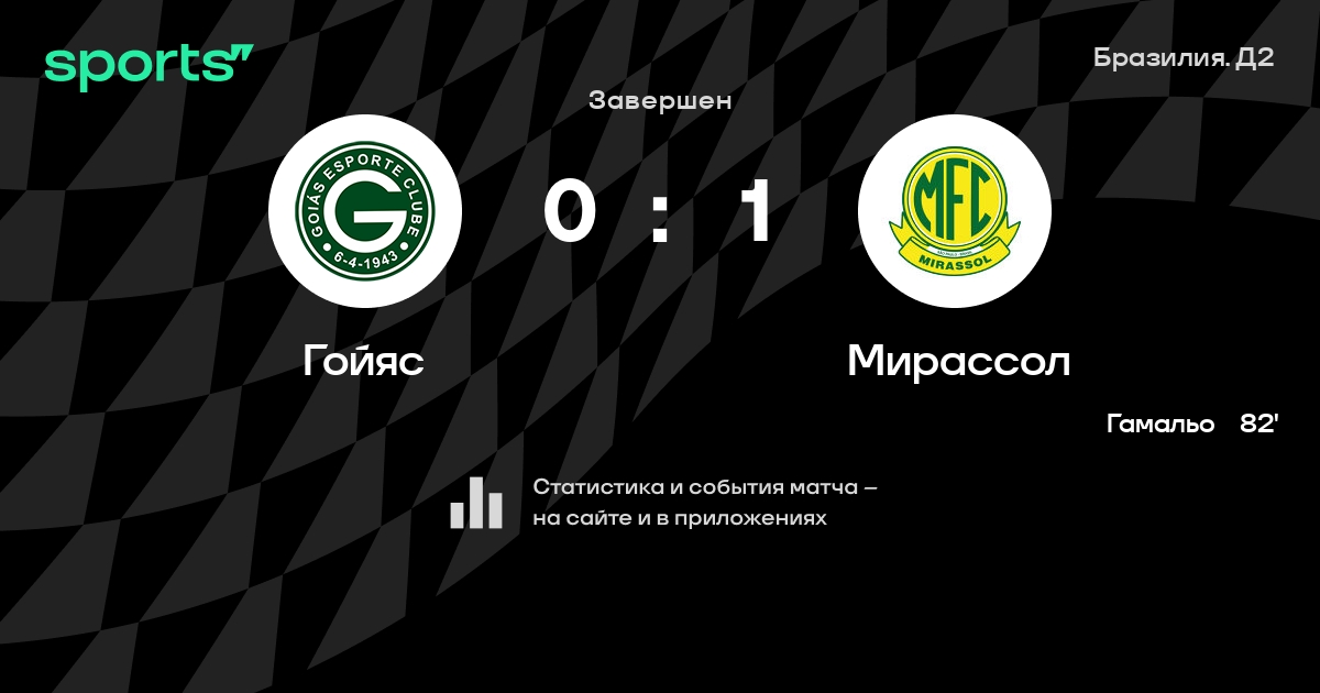Результат прошлой игры в турнире «Серия B»: Спорт Ресифи – Гойяс 1:1. После 26 туров Гойяс набирает 37 очков и занимает 10 место в турнире. Лучший бомбардир команды – Baya: он забил 14 в 38 матчах. Гойяс пропускает в 18 последних матчах в турнире «Серия B». В последних 5 играх Гойяс забивает 4 голов. В последних 5 играх Гойяс пропускает 5 голов.