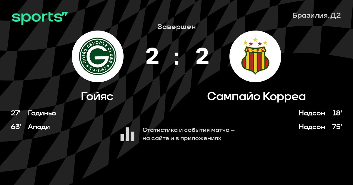 Гойяс – Сампайо Корреа: Гойяс не проигрывает в 5 последних матчах против этого соперника