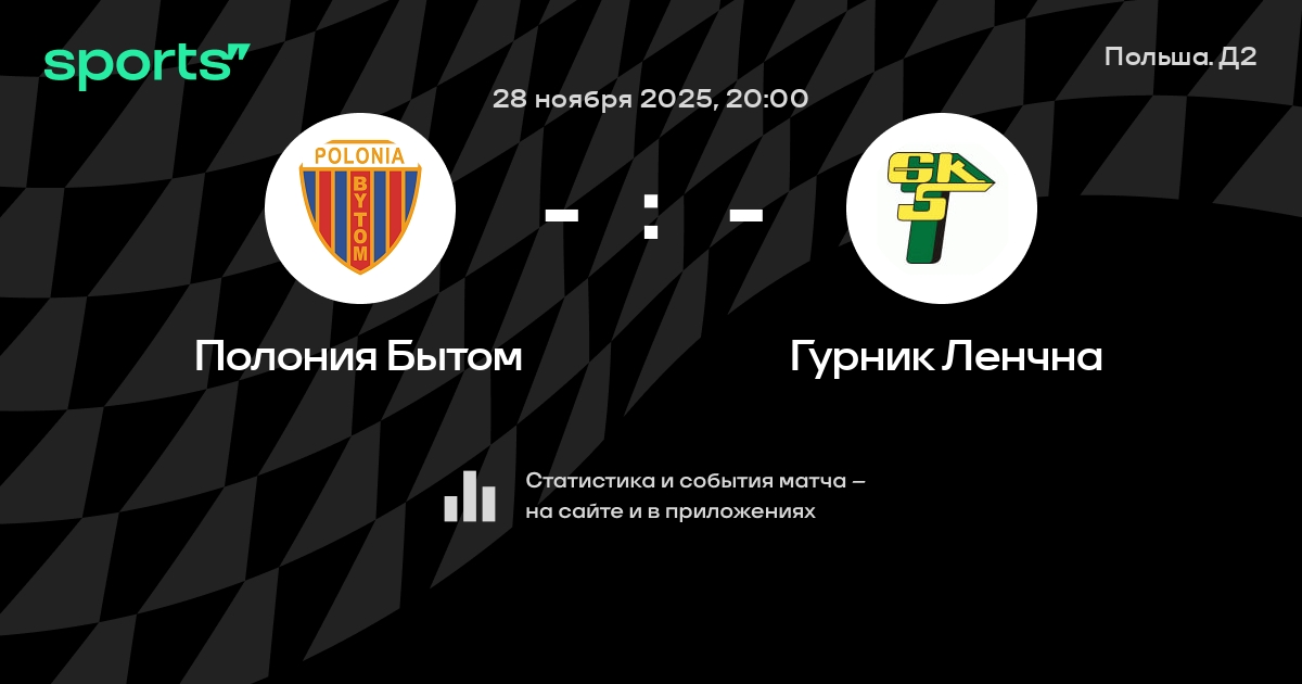 Результат прошлой игры в турнире «Первая лига»: Полония Бытом – Сталь Мелец 4:1. После 17 туров Полония Бытом набирает 30 очков и занимает 3 место в турнире. Лучший бомбардир команды – T. Gajda: он забил 6 в 14 матчах. Полония Бытом побеждает в 3 последних матчах в рамках турнира «Первая лига». В 4 последних матчах в турнире «Первая лига» Полония Бытом обязательно забивает. В последних 5 играх Полония Бытом забивает 17 голов. В последних 5 играх Полония Бытом пропускает 5 голов.