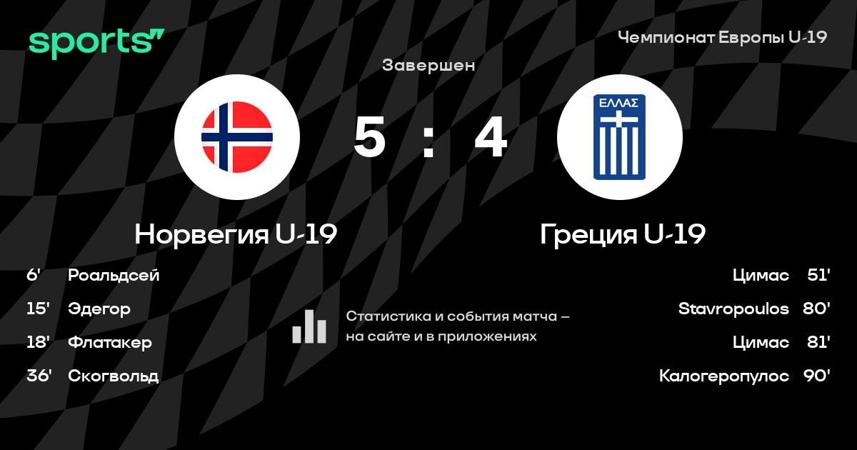 В последних 5 играх Греция U-19 забивает в среднем 2.00 гола за игру