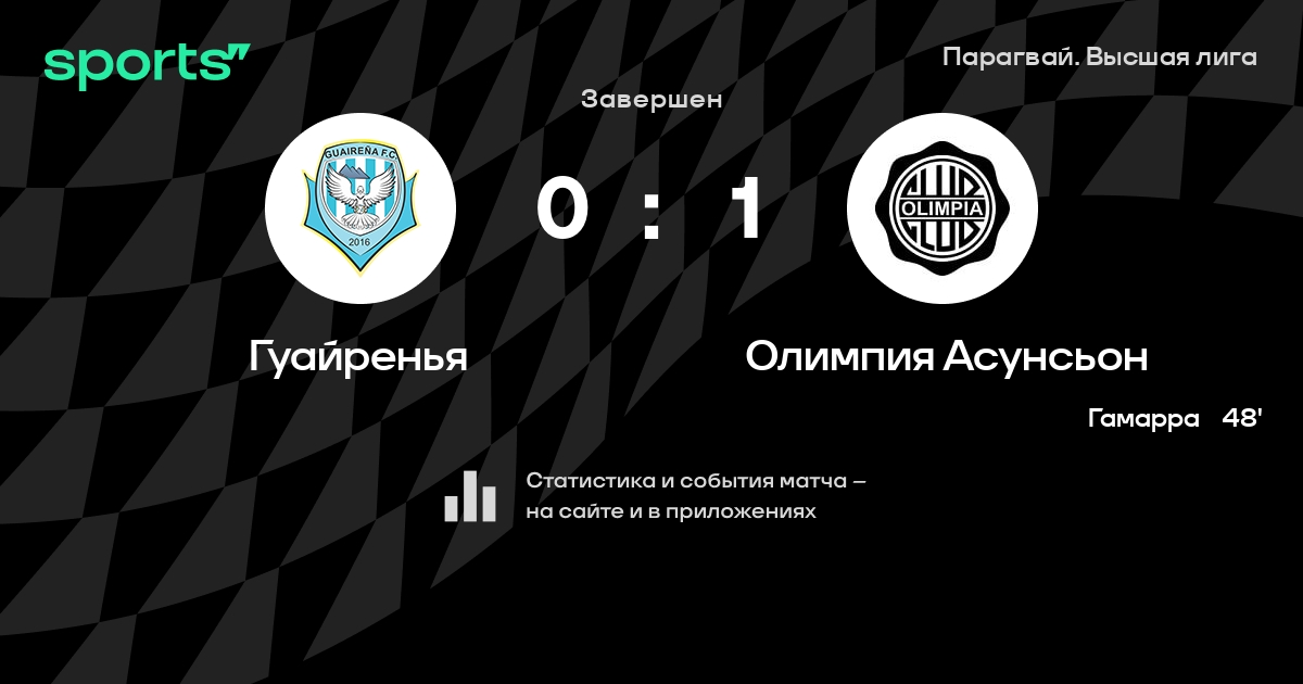 Гуайренья – Олимпия Асунсьон: Олимпия Асунсьон не проигрывает в 7 из 9 последних матчей против этого соперника