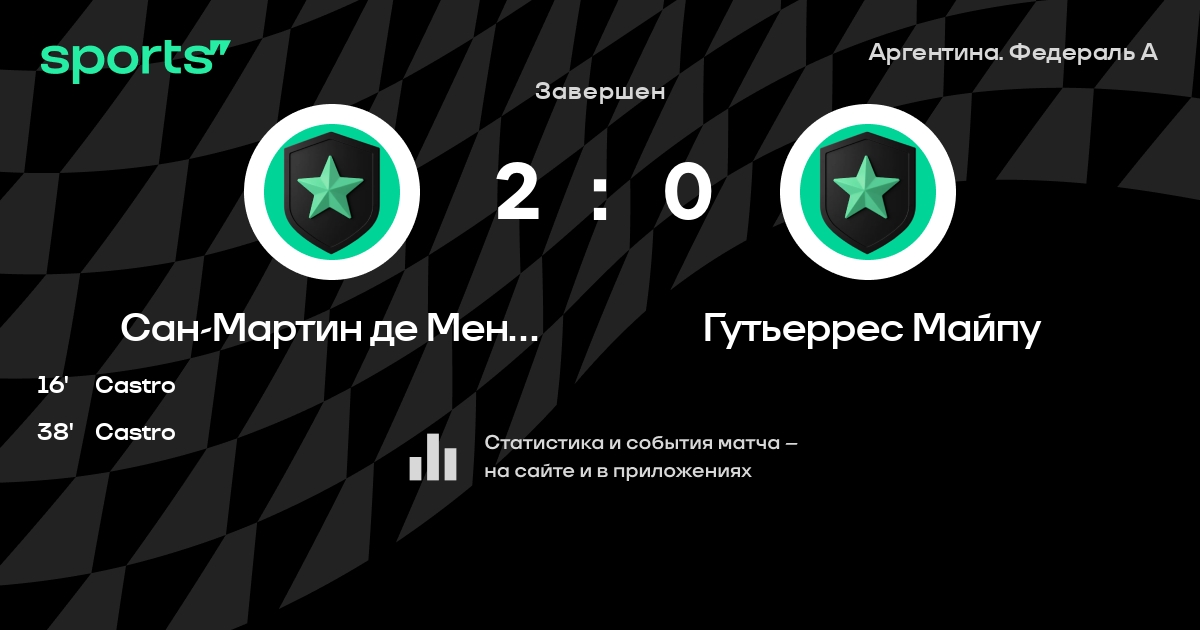 Сан-Мартин де Мендоса – Гутьеррес Майпу: Сан-Мартин де Мендоса не проигрывает в 5 из 6 последних матчей против этого соперника дома
