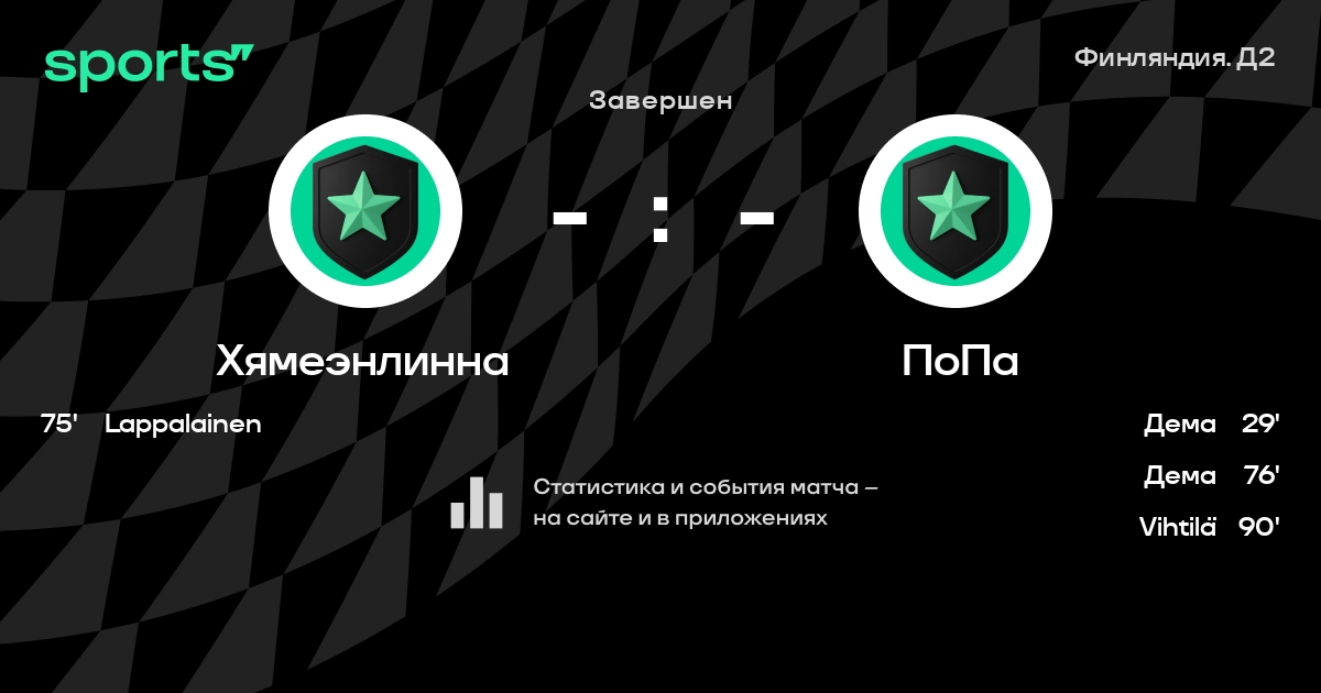 | 7 | Хямеэнлинна | 24 | 9 | 6 | 9 | 30 | 34 | -4 | 33 | ||