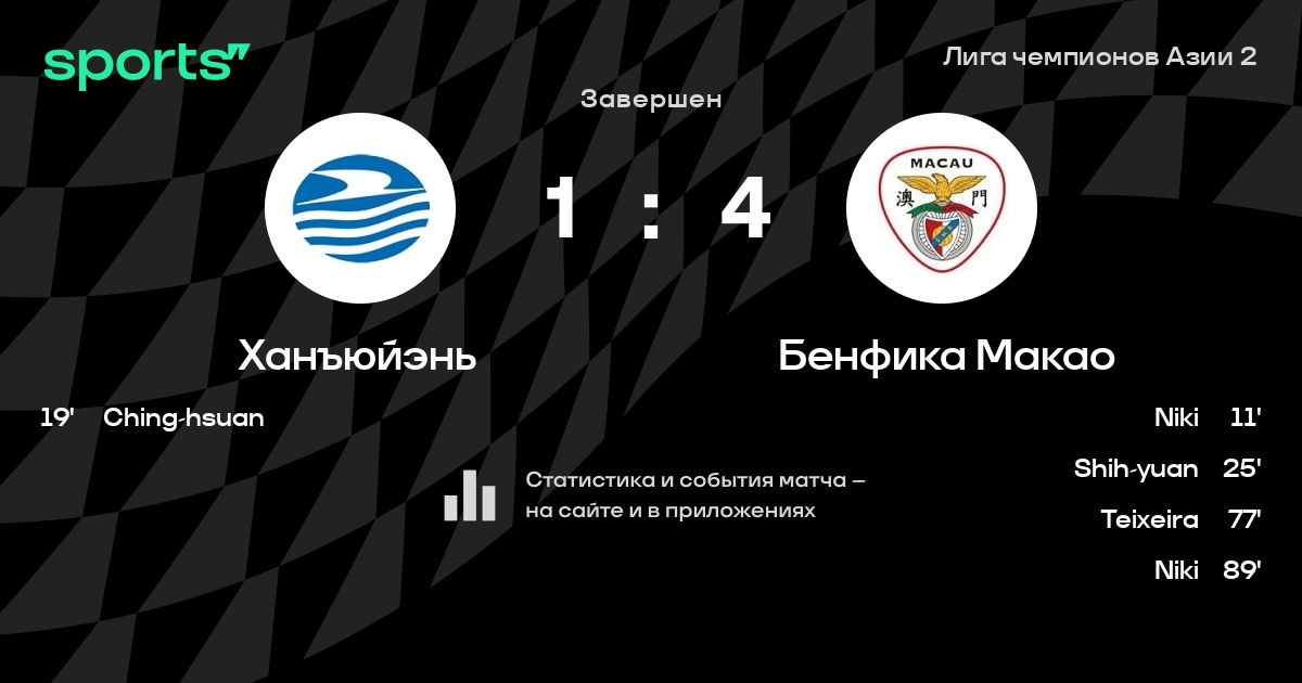 Ханъюйэнь – Бенфика Макао: коэффициенты