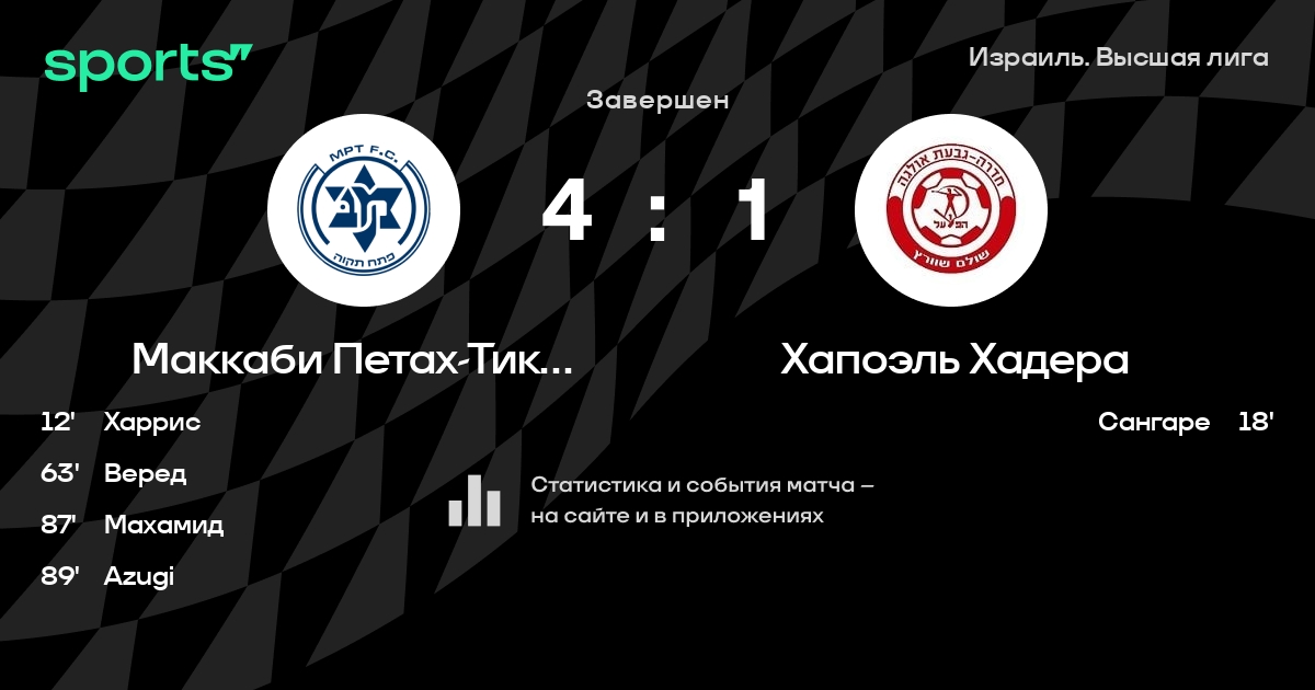 Маккаби Петах-Тиква - Хапоэль Хадера: обзор матча