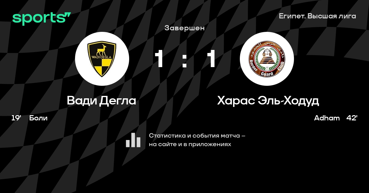 Результат прошлой игры в турнире «Премьер-лига»: Аль-Иттихад – Вади Дегла 1:2. После 12 туров Вади Дегла набирает 19 очков и занимает 6 место в турнире. Лучший бомбардир команды – Ahmed Farouk: он забил 4 в 12 матчах. В последних 5 играх Вади Дегла забивает 5 голов. В последних 5 играх Вади Дегла пропускает 5 голов.