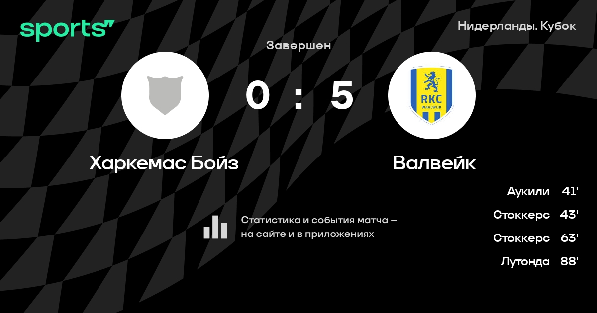 Валвейк не выигрывает в 8 последних матчах в гостях в турнире «Нидерланды. Кубок КНВБ»