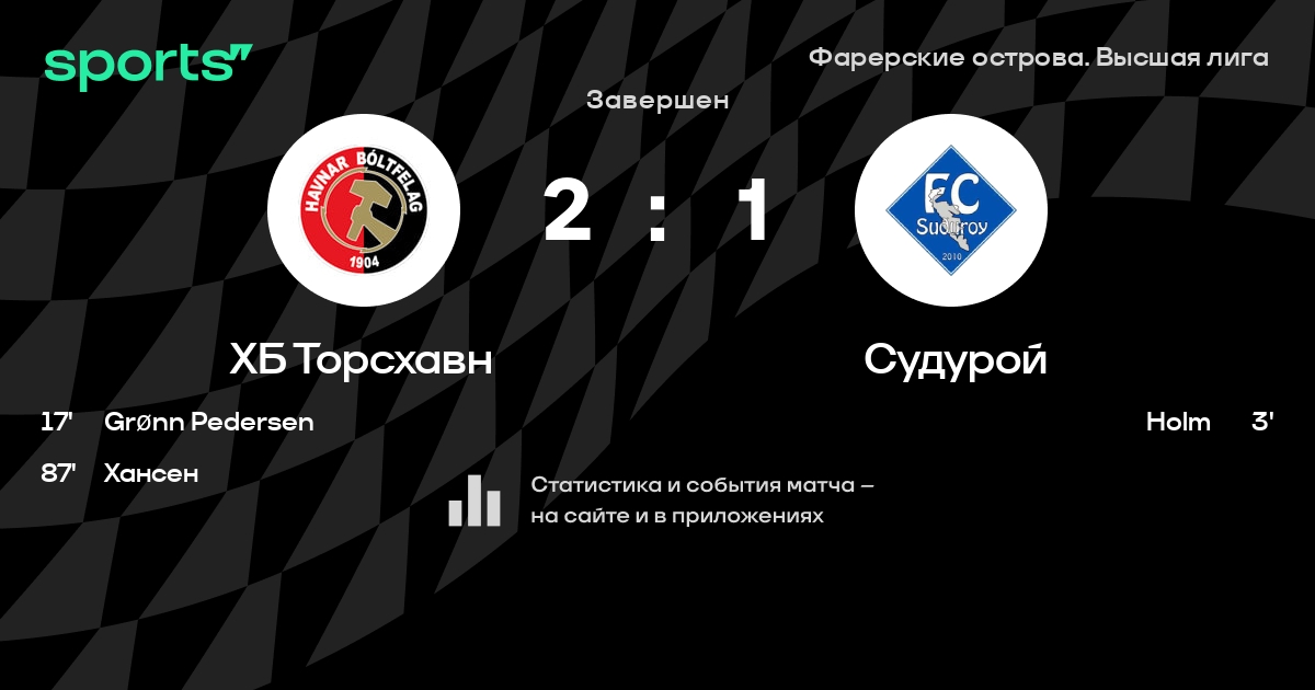Результат прошлой игры в турнире «Высшая лига»: ХБ Торсхавн – Б-36 Торсхавн 2:2. После 22 туров ХБ Торсхавн набирает 49 очков и занимает 3 место в турнире. Лучший бомбардир команды – E. Pedersen: он забил 12 в 23 матчах. ХБ Торсхавн не проигрывает в 14 последних матчах в рамках турнира «Высшая лига». В последних 5 играх ХБ Торсхавн забивает 14 голов. В последних 5 играх ХБ Торсхавн пропускает 5 голов.