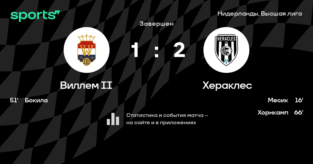 Виллем II – Хераклес: Виллем II забивает в 5 последних матчах против этого соперника
