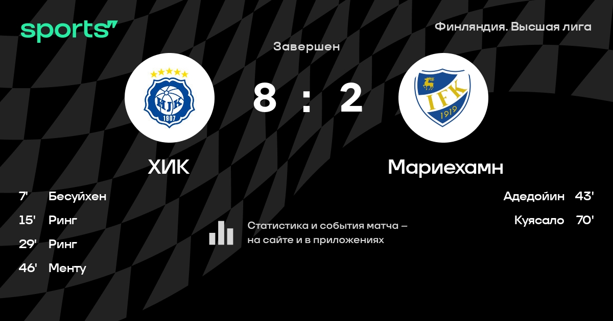 ХИК – Мариехамн: ХИК побеждает в 6 последних очных матчах