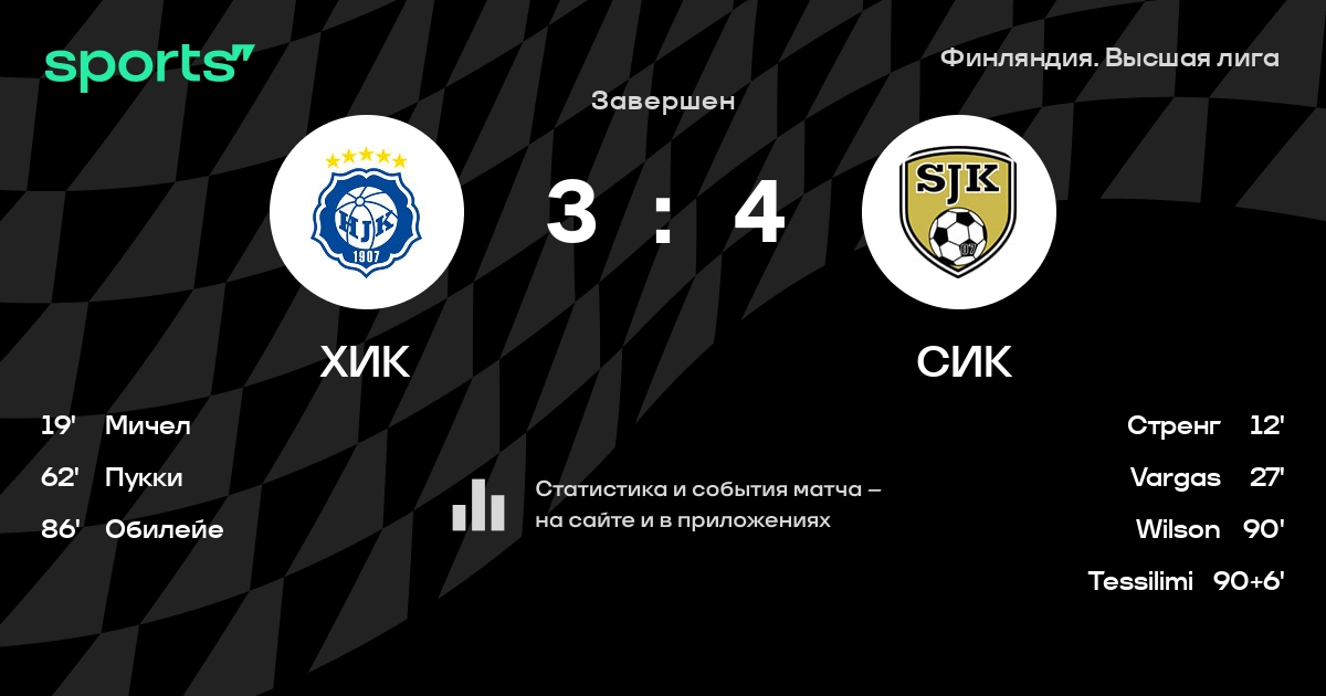 Результат прошлой игры в турнире «Высшая лига»: КуПС – ХИК 3:1. После 22 туров ХИК набирает 44 очков и занимает 3 место в турнире. Лучший бомбардир команды – Теему Пукки: он забил 20 в 34 матчах. ХИК не может выиграть в 5 последних матчах в рамках турнира «Высшая лига». ХИК имеет лучшую разницу мячей в турнире – 30. В 3 последних матчах в турнире «Высшая лига» ХИК обязательно забивает. ХИК пропускает в 3 последних матчах в турнире «Высшая лига». ХИК больше всех забивает в турнире – 67 в 27. В последних 5 играх ХИК забивает 6 голов. В последних 5 играх ХИК пропускает 8 голов.