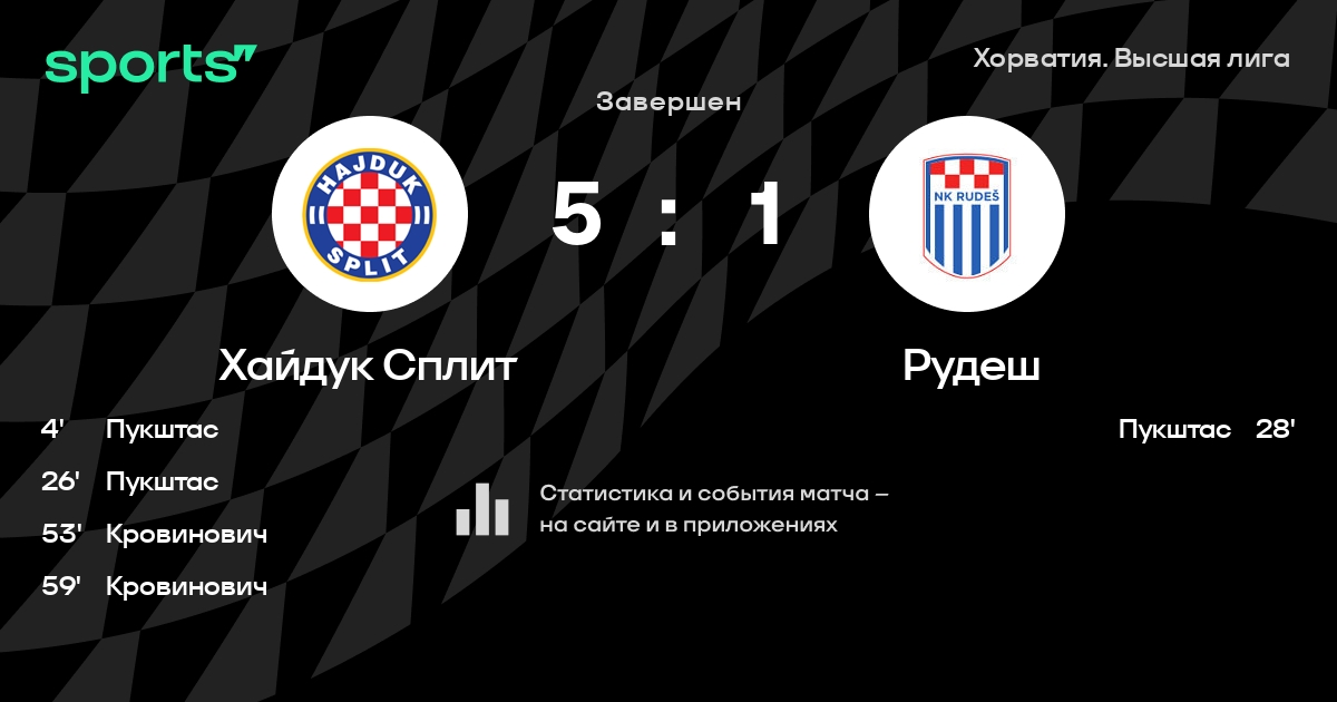 Хайдук Сплит – Рудеш: Хайдук Сплит побеждает в 7 последних очных матчах