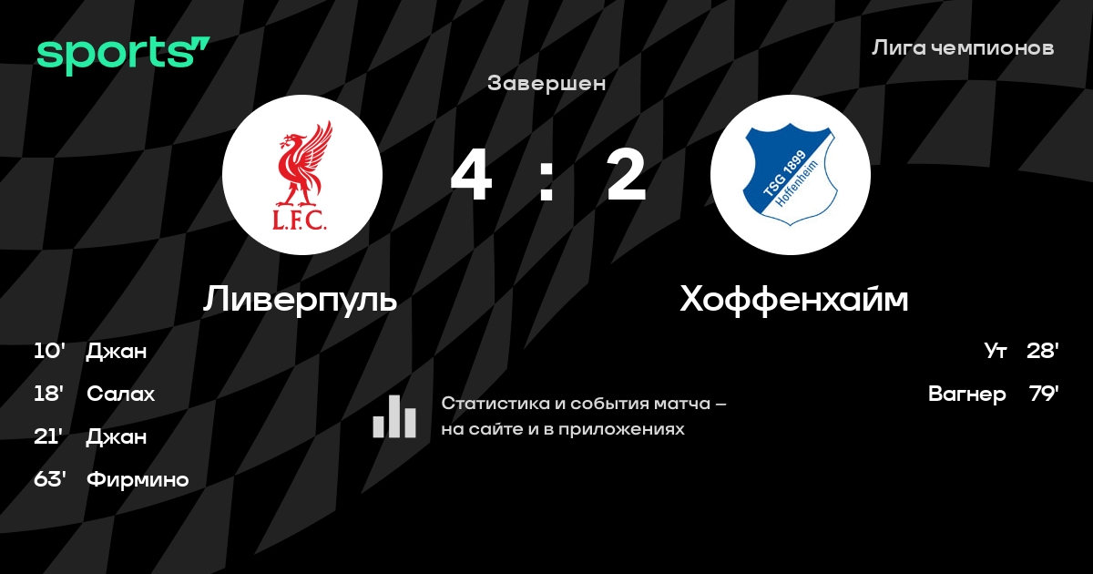 Миньоле - Альберто Морено, Ловрен, Матип, Александер-Арнолд - Вейналдум, Хендерсон, Джан - Мане, Фирмино, СалахЗапасные: Кариус, Гомес, Клаван, Робертсон, Милнер, Соланке, Старридж