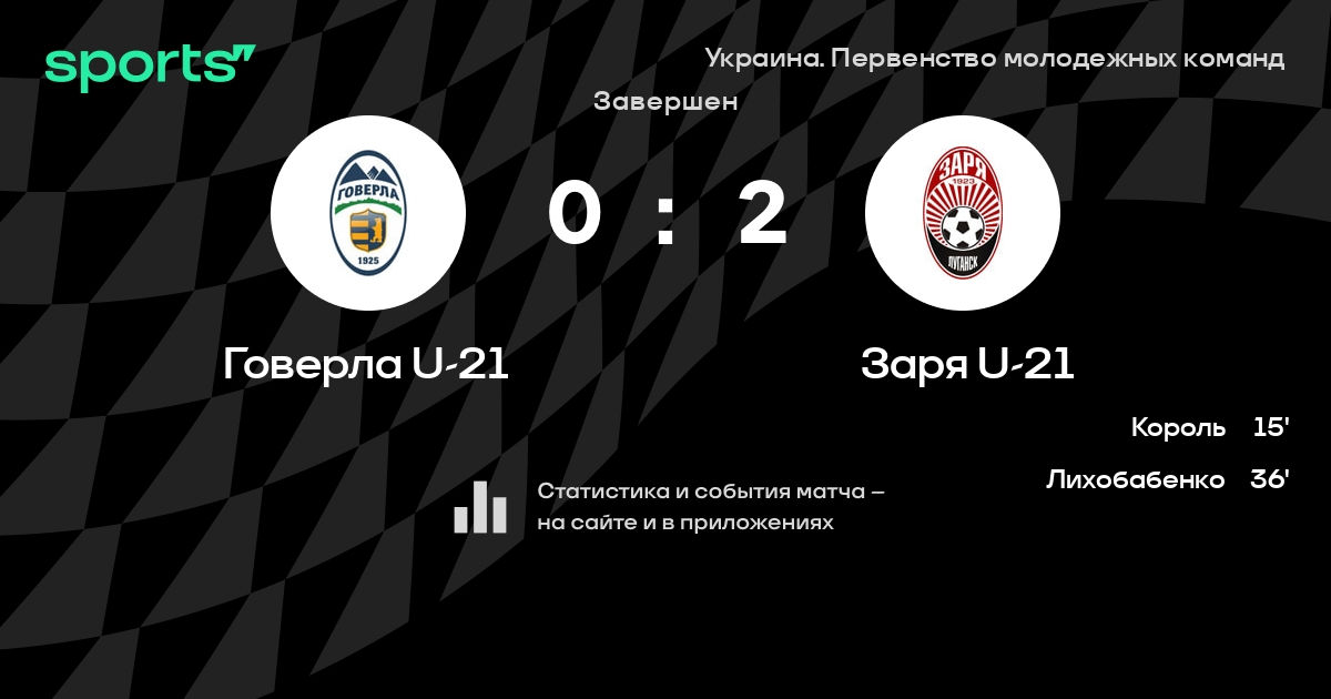 Говерла U-21 - Заря U-21: статистика матча