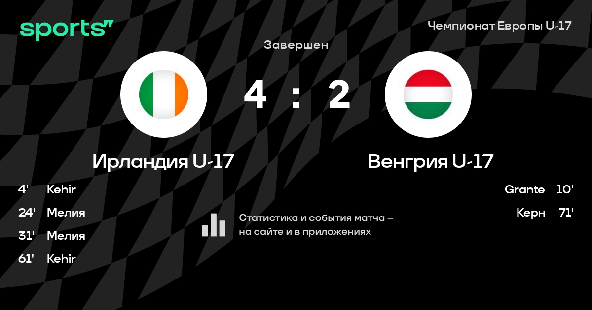 В последних 5 играх Ирландия U-17 забивает в среднем 3.40 гола за игру