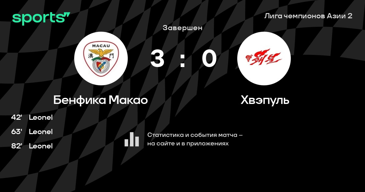 | 2 | Бенфика Макао | 6 | -2 | 12 | ||
