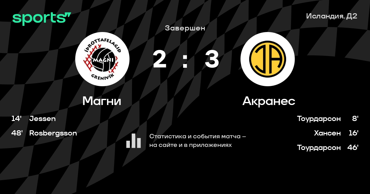 Ólafsson - Gudmundsson, Гуннарссон - Тоурдарсон, Valdimarsson, Einarsson, Flosason, Gudjonsson, Hafsteinsson - Хансен, ThorsteinssonЗапасные: Магнуссон, Helgi Benediktsson, Pétursson, Вейл, Thórdarson, Бьяркасон, Bergmann Gunnlaugsson