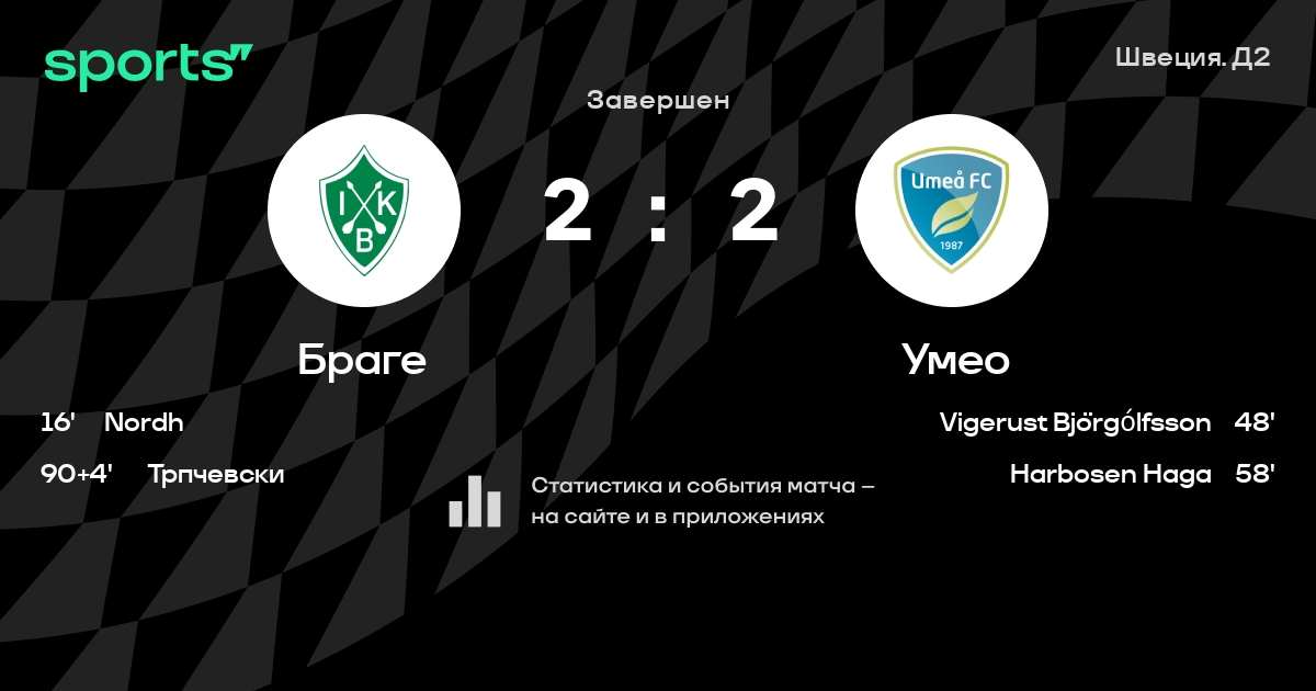 Браге – Умео: Браге не проигрывает в 6 из 8 последних матчей против этого соперника
