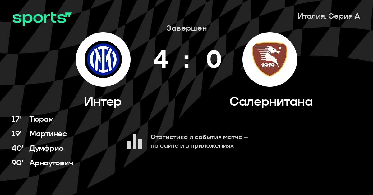 Интер – Салернитана: Интер не проигрывает в 5 последних матчах против этого соперника