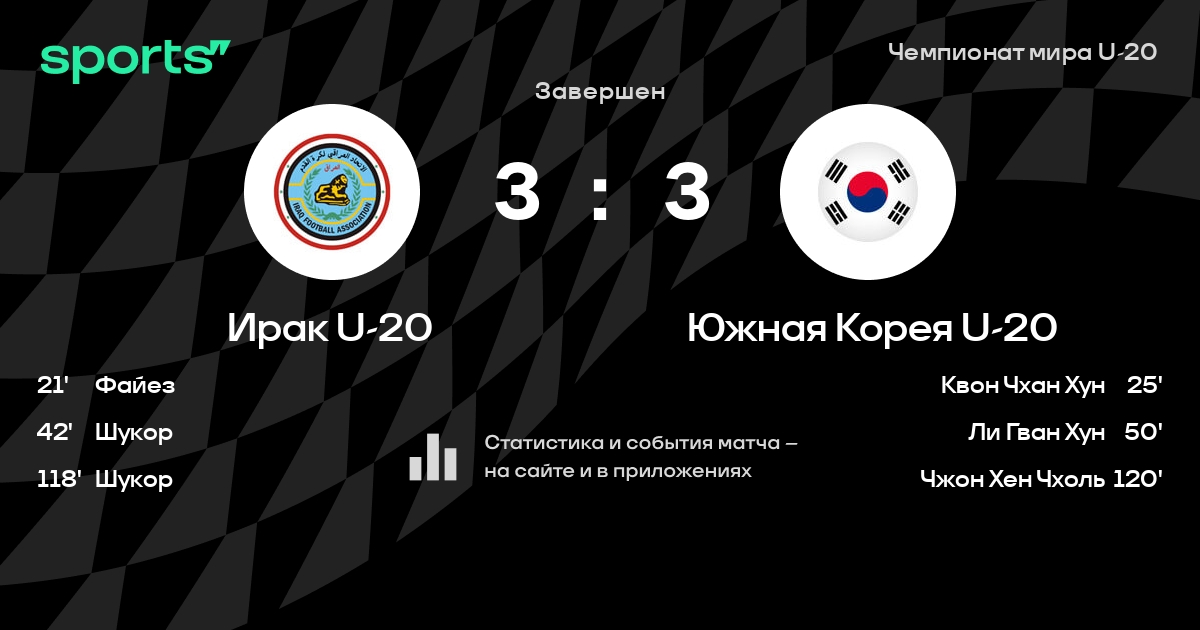 Ирак U-20 – Южная Корея U-20: коэффициенты