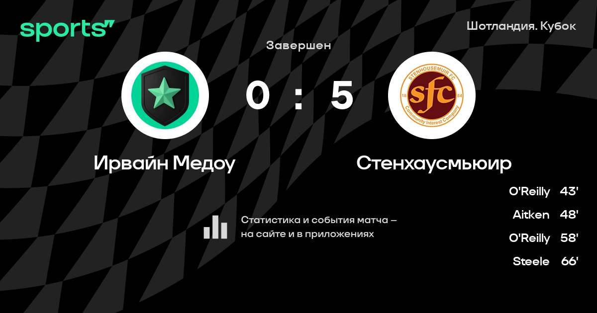 В последних 5 играх Стенхаусмьюир забивает 5 голов. В последних 5 играх Стенхаусмьюир пропускает 7 голов.