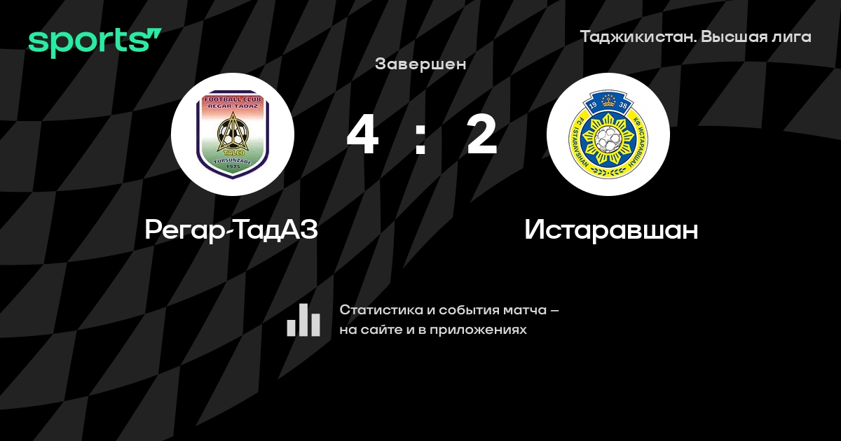 Результат прошлой игры в турнире «Высшая лига»: Равшан – Регар-ТадАЗ 0:0. После 14 туров Регар-ТадАЗ набирает 19 очков и занимает 7 место в турнире. Лучший бомбардир команды – D. Atsam: он забил 1 в 1 матчах. Регар-ТадАЗ не может выиграть в 3 последних матчах в рамках турнира «Высшая лига». В последних 5 играх Регар-ТадАЗ забивает 4 голов. В последних 5 играх Регар-ТадАЗ пропускает 5 голов.