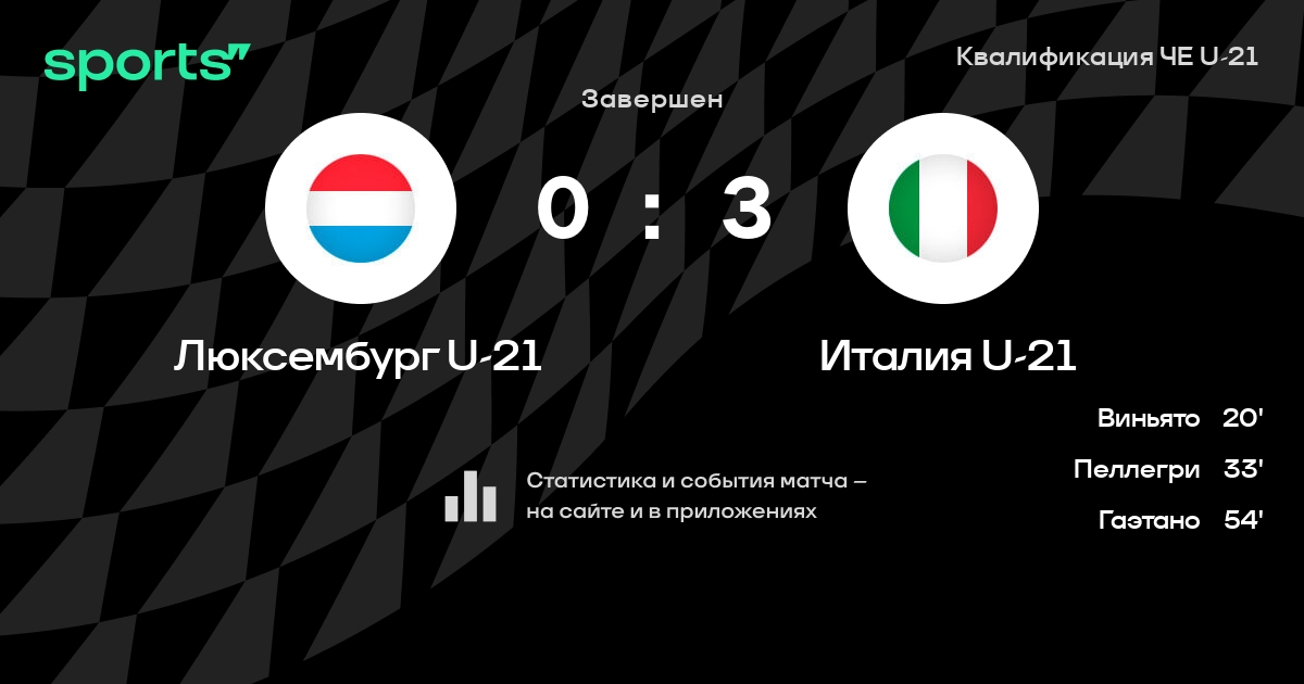 | 1 | Италия U-21 | 10 | 7 | 3 | 0 | 19 | 5 | +14 | 24 | ||