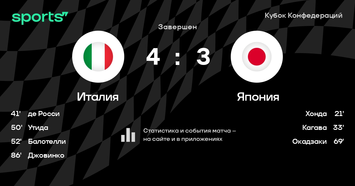 Буффон - Де Шильо, Кьеллини, Бардзальи, Маджо - де Росси, Джаккерини, Аквилани, Пирло, Монтоливо - БалотеллиЗапасные: Сиригу, Маркетти, Астори, Бонуччи, Кандрева, Маркизио, Диаманти, Черчи, Джовинко, Эль-Шаарави