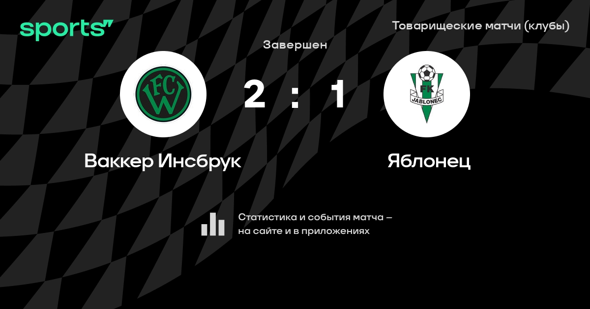 Ваккер Инсбрук проигрывает в 4 последних матчах в рамках турнира «Товарищеские матчи (клубы)». Ваккер Инсбрук пропускает в 4 последних матчах в турнире «Товарищеские матчи (клубы)». В последних 5 играх Ваккер Инсбрук забивает 21 голов. В последних 5 играх Ваккер Инсбрук пропускает 0 голов.