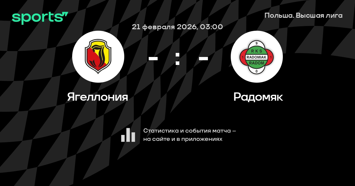 Ягеллония – Радомяк: Ягеллония побеждает в 6 последних очных матчах