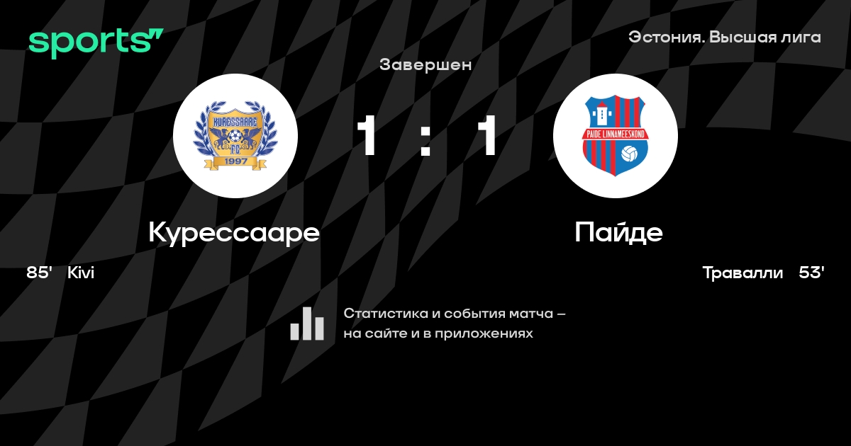 Результат прошлой игры в турнире «Высшая лига»: Таммека – Курессааре 0:1. После 30 туров Курессааре набирает 24 очков и занимает 8 место в турнире. Лучший бомбардир команды – Мяртен Паюнурм: он забил 7 в 30 матчах. В последних 5 играх Курессааре забивает 4 голов. В последних 5 играх Курессааре пропускает 5 голов.