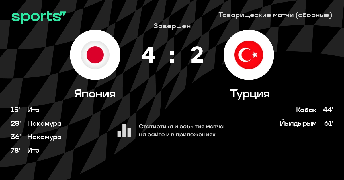 В последних 5 играх Япония забивает в среднем 3.20 гола за игру