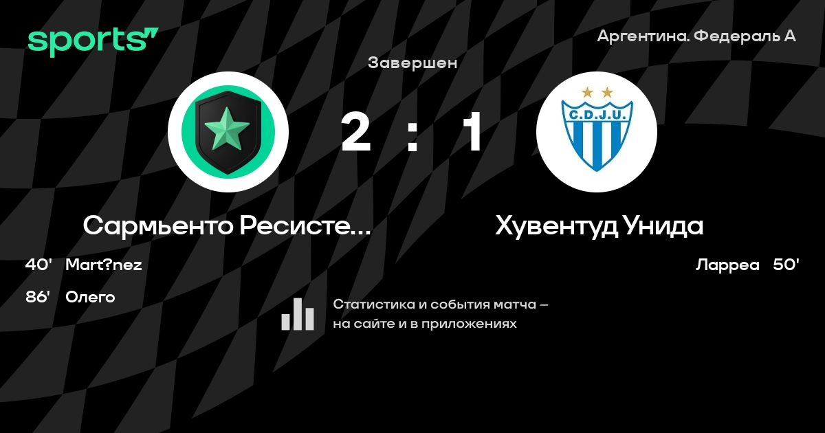 Сармьенто Ресистенсия – Хувентуд Унида: коэффициенты