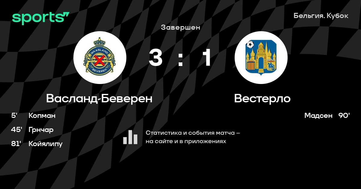 Васланд-Беверен – Вестерло: Вестерло забивает в 6 последних матчах против этого соперника