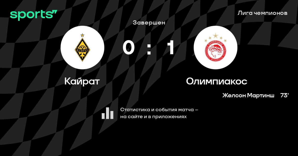 Лига чемпионов: «Кайрат – Олимпиакос», шансы на победу в матче 6 тура 9 декабря 2025 года
