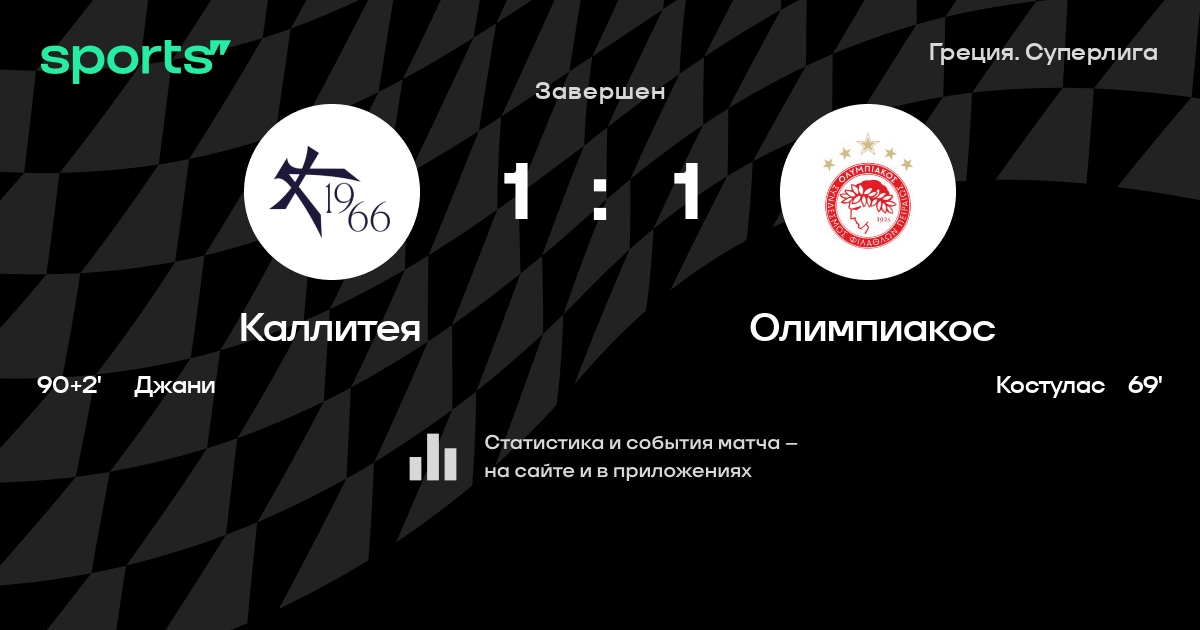 Результат прошлой игры в турнире «Суперлига»: Каллитея – Левадиакос 2:4. После 14 туров Каллитея набирает 8 очков и занимает 14 место в турнире. Лучший бомбардир команды – Матье Вальбуэна: он забил 2 в 14 матчах. Каллитея не может выиграть в 14 последних матчах в рамках турнира «Суперлига». Олимпиакос имеет в активе больше всех побед в турнире – 9. В 5 последних матчах в турнире «Суперлига» Каллитея обязательно забивает. Каллитея пропускает в 9 последних матчах в турнире «Суперлига». В последних 5 играх Каллитея забивает 8 голов. В последних 5 играх Каллитея пропускает 11 голов.