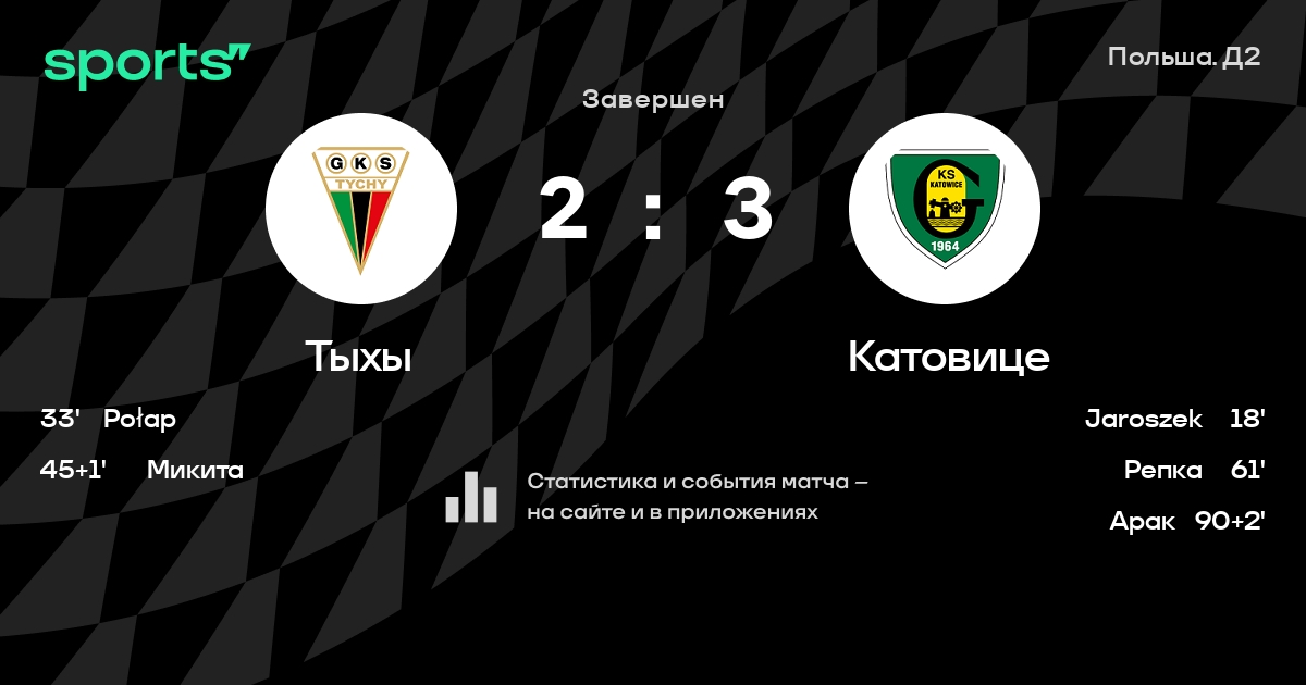 Тыхы – Катовице: Катовице не проигрывает в 8 из 10 последних матчей против этого соперника