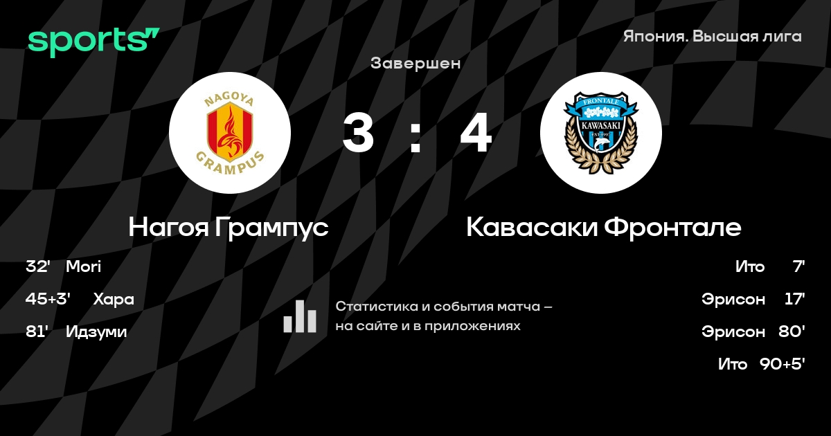 Результат прошлой игры в турнире «Джей-лига 1»: Урава Ред Даймондс – Нагоя Грампус 2:1. После 26 туров Нагоя Грампус набирает 28 очков и занимает 16 место в турнире. Лучший бомбардир команды – Се Инагаки: он забил 9 в 29 матчах. Нагоя Грампус проигрывает в 3 последних матчах в рамках турнира «Джей-лига 1». Нагоя Грампус пропускает в 3 последних матчах в турнире «Джей-лига 1». В последних 5 играх Нагоя Грампус забивает 6 голов. В последних 5 играх Нагоя Грампус пропускает 9 голов.