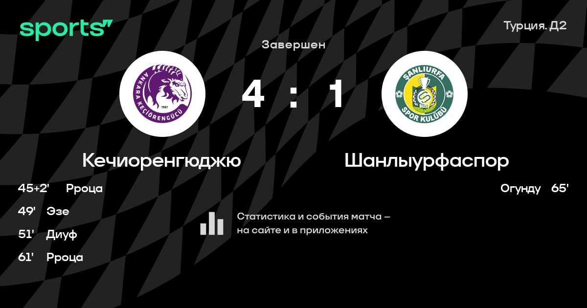 Кечиоренгюджю – Шанлыурфаспор: Кечиоренгюджю не пропускает в 3 последних матчах против этого соперника