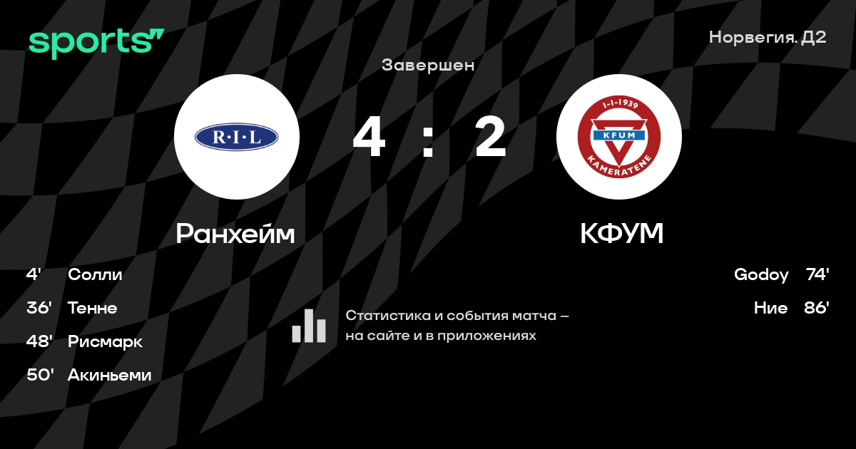 Ранхейм – КФУМ: КФУМ забивает в 6 из 8 последних матчей против этого соперника