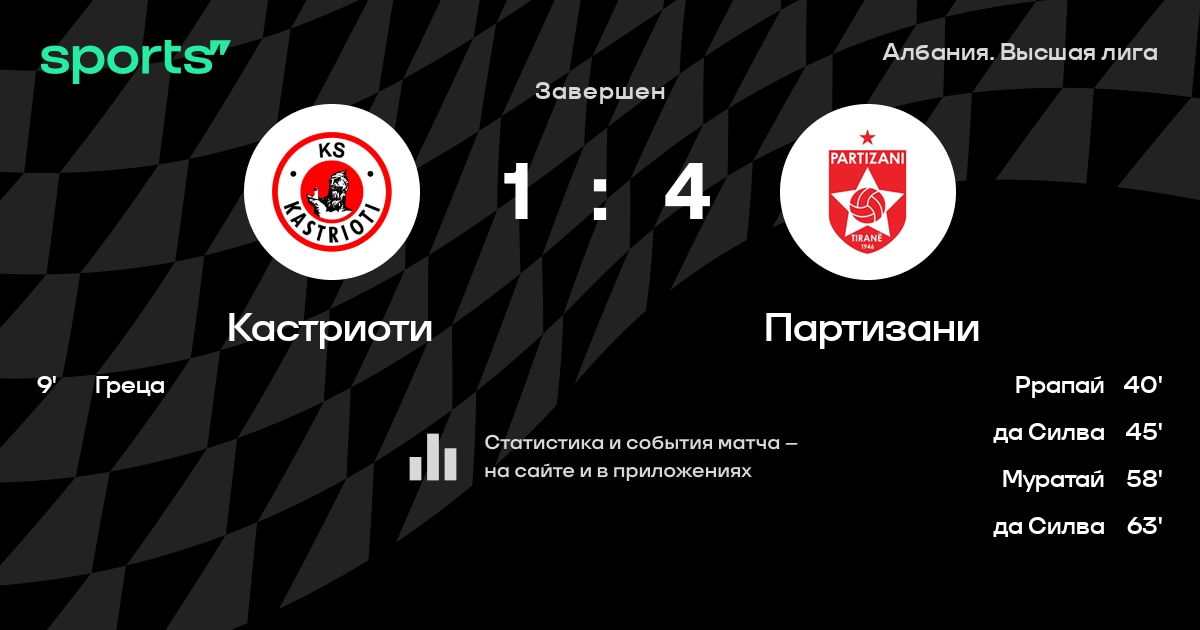 Кастриоти – Партизани: Партизани не проигрывает в 9 из 11 последних матчей против этого соперника