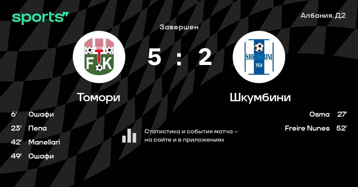 Томори – Шкумбини: Томори не проигрывает в 5 из 6 последних матчей против этого соперника дома в турнире «Албания. Д2»